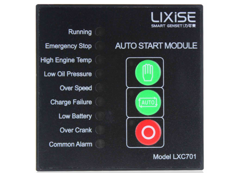 The Model LXC701 is an Automatic Engine Control Module. The module is used to automatically start and stop the engine, indicating the operational status and fault conditions, automatically shutting down the engine and indicating the engine failure by LED on the front panel.