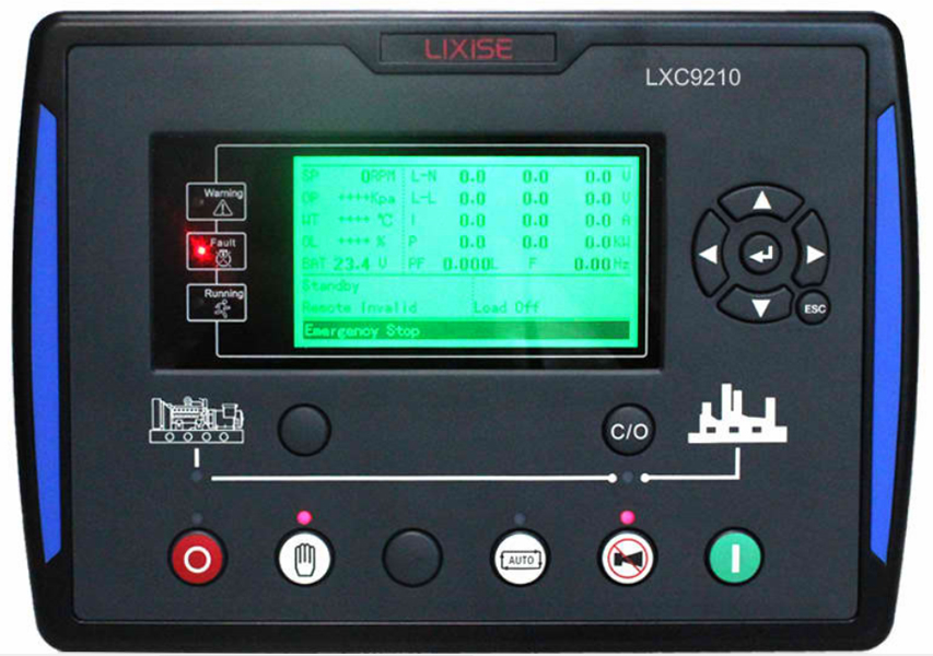 LXC9210 plant automation controller series diesel generator sets for a single automation and control systems, the use of 32-bit microprocessors and embedded real-time systems technology, turbine automatic start / stop, a variety of parameters precision measurement, alarm protection and "three remote "function. The controller uses LCD screen (240 * 128LCD) graphic display can be displayed on one page under almost all the important parameters, save the page. Also can display Chinese, English and other languages, all parameters can be adjusted from the control panel, or use a PC via USB, RS232, RS485, LINK or GPRS remote adjustment and monitoring. Its compact, simple wiring, high reliability, and can be widely used in various types of generators automation systems, but also for fire pumps, air compressor automation control systems.