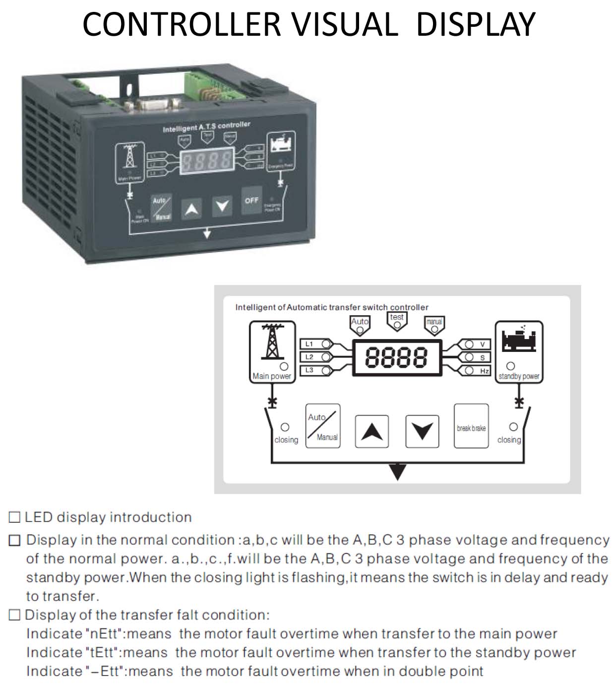 □ It can display two way three phase voltage, frequency, and switch situation accurately.