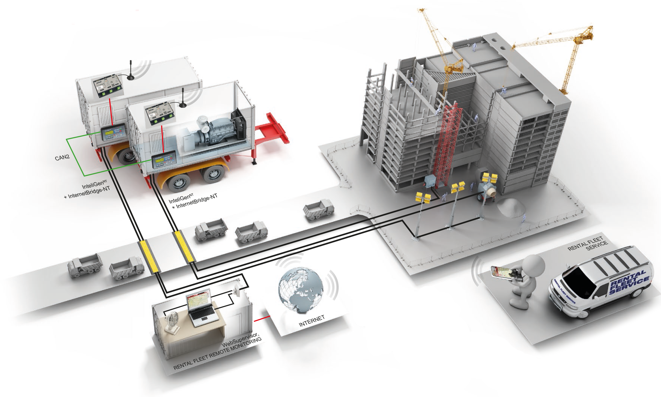 | Complete integrated gen-set solution and signal sharing via CAN bus – minimum external components needed |